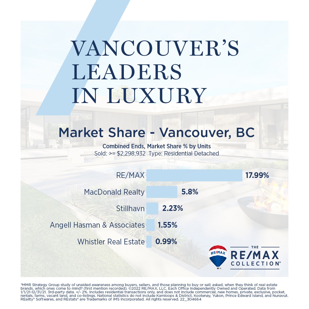 Toronto and Vancouver luxury agents continue to lead market share and are more productive than any other real estate brand. Share The RE/MAX Collection luxury assets on your marketing channels.