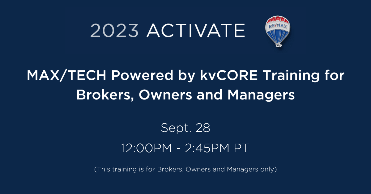 Broker, Owners and Managers, please join us for a MAX/Tech Train-the-Trainer experience, designed to help you guide your agents as they explore features on MAX/Tech powered by kvCORE! In this session, you will discover key functionality that will help your agents find success with their new tools and begin learning how to support them on their technology adoption journey.