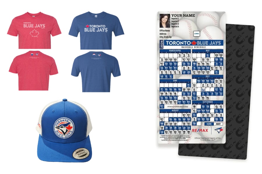 Shop Genumark, a RE/MAX Approved Supplier to order all your co-branded sports apparel or you can even order and customize these co-branded baseball schedule magnets from Truly Engaging as standout gifts for your clients. Plus, download the editable co-branded digital baseball schedule to share with clients, use in your newsletters, or include on your website.