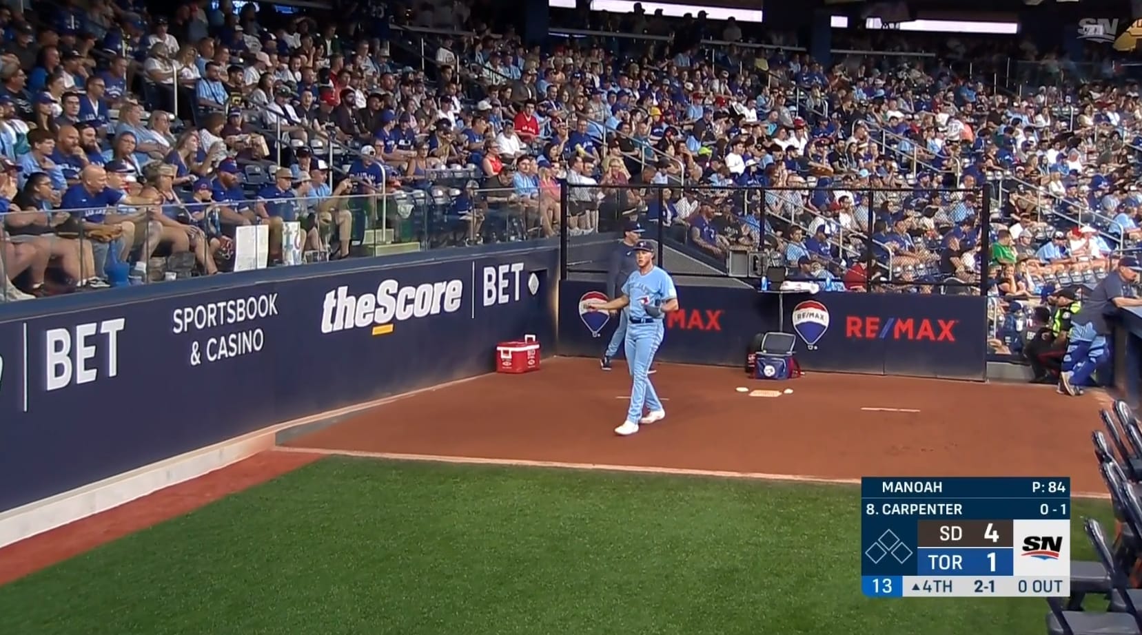 - RE/MAX logo on the back wall of the bullpen.