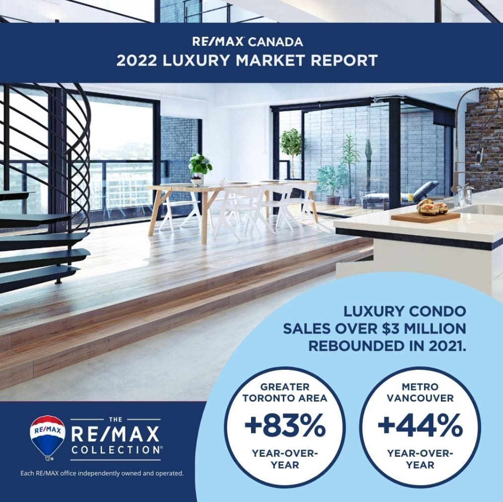 Demand for Canadian luxury real estate shifted into high-gear from coast to coast in 2021 as both domestic and non-resident consumption of tangible assets, such as homes, reached new levels, according to a report released today by RE/MAX Canada.